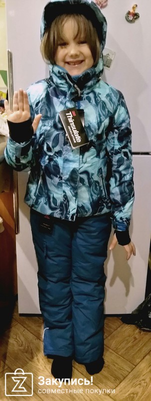 Нам очень понравился костюм , качественный и модный . Рост у нас 116 , взяли на 128 , на следующую зиму точно зато хватит ) Есть все прибамбасы для горнолыжки - резинки и перчатки и т.д. Спасибо огромное организатору за такой классный костюм !