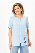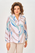 Блуза Элль стиль 2398/2а коричневый, голубой принт