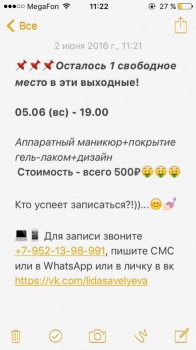 Лен, снятие чужого покрытия - 100 рублей... Для записи жду номер вашего телефона в ЛС ab
