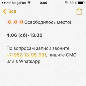 Ближайшее свободное время для записи 08.06 (ср) - 10.00, 13.00, 16.00