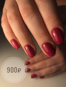 Однотонное покрытие ногтей гель-лаком (в стоимость входит маникюр и выравнивание ногтевой пластины) - 900 руб
