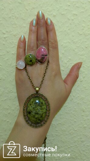 Еще мне понравились бижутерия с природными кабошонами, подвеска конечно прозводит впечатление своими размерами)))) Буду делать позже и с лазуритом. Сами сережки легкие достаточно, но мне кажется что самые малый размер( круг 12 мм)-- на фото розовый кварц, больше подойдет девушкам молоденьким или совсем хрупкого телосложения женщинам. Размер 18 мм( круг) на фото в змеевике выполненный--универсальный такой размерчик, мне он понравился больше чем в родолите (размер овал 25*18мм) --хотя сам камень очень красивый! Но для разнообразия можно под настроение . Саму цепочку я конечно же сразу же убрала, по мне она немного дешевенько смотрится.