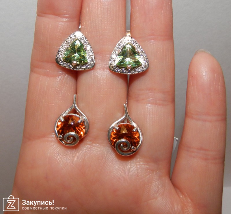 Завершу вот этими сережками, пылающими огоньками-цитринами, и весенне-игривым зеленым алпанитом.