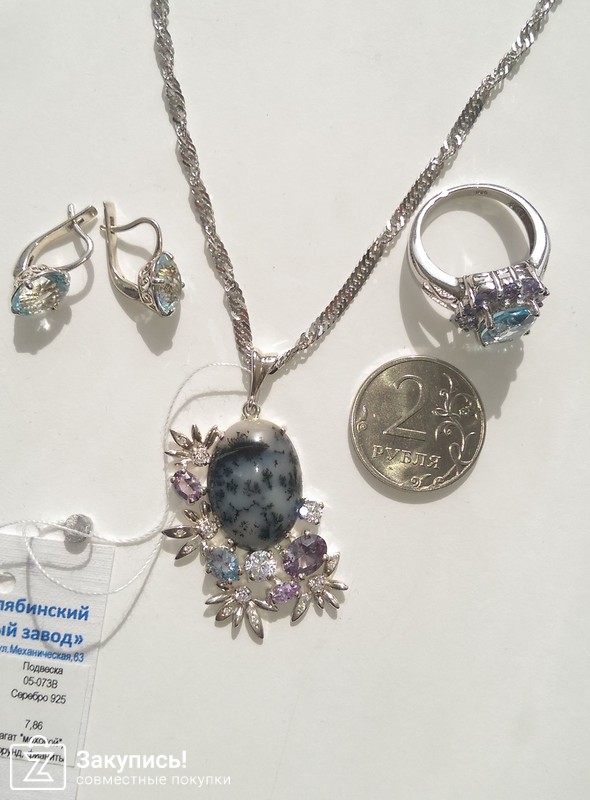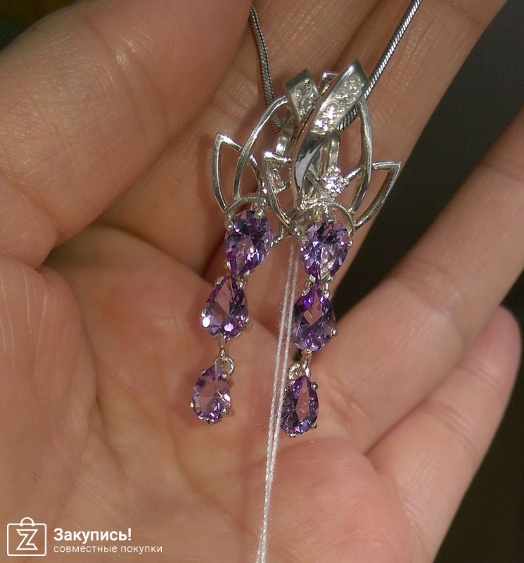 Продолжу так же украшениями изготовленными заводом в Челябинске. Этот комплект с аметистами собирала себе участница . Слова восхищения подобрать крайне сложно, я конечно стараюсь как то через фото или видео донести до общественности все красоту их изделий, очень надеюсь что хоть на 50% получается передать информацию.....Вот когда держишь в руках --возникает какой то внутренний трепет от созерцания настолько прекрасных изделий. Там понимаете, каждое изделие сделано с душой. Не массовый поток- а именно настроение определенное заложено . Я когда общалась с изготовителем-поставщикам(зовут ее Ольга), поделилась с ей своими мыслями-она и призналась что огранкой камней(и даже вроде такое, относительно простое как изготовление кабошонов) нельзя заниматься когда тебе плохо или плохое настроение. Все равное ничего хорошего не получится, просто магия какая то.