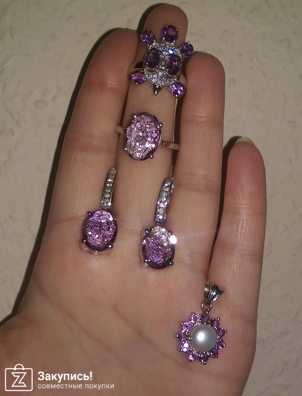 Начну с набора Дорис с аметистами , и тут же на фото кольцо черепашка(милейшее колечко) и чудная подвеска с аметистами и жемчугом! Про набор Дорис уже много было написано, повторятся не хочется. Просто посмотрите до чего же прекрасна задумка ювелира ТАК изготовить эти украшения! Фото со вспышкой и без. Пока эти украшения идут с очень хорошей скидкой, кто на них заглядывается рекомендую успевать купить ))))