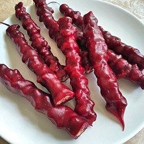 Чурчхела не впечатлила. Ожидала типа армянской, мягкой и мясистой, чурчхелы. Здесь бы обычная - жесткая, немного резиновая. Есть можно, но никакого отличия от магазинной я, к сожалению, не заметила.