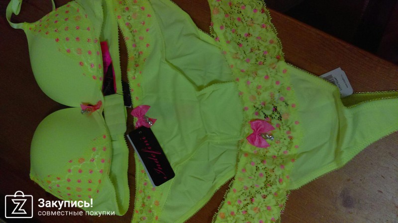 Заказывала по распродаже комплект за смешные 300 р. Цвет гораздо более яркий в жизни, в описании написано, что в комплекте 2 трусиков, по факту были только одни слипы. Подошел мне по размеру очень хорошо. Юля как всегда большая молодец, все очень оперативно и четко!