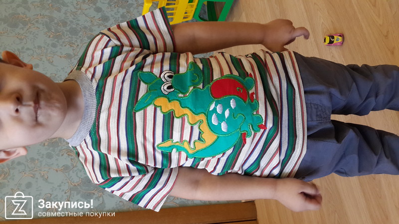 Футболка размер 3-4, нам с хорошим запасом в длину (а может и модель футболки такая?)