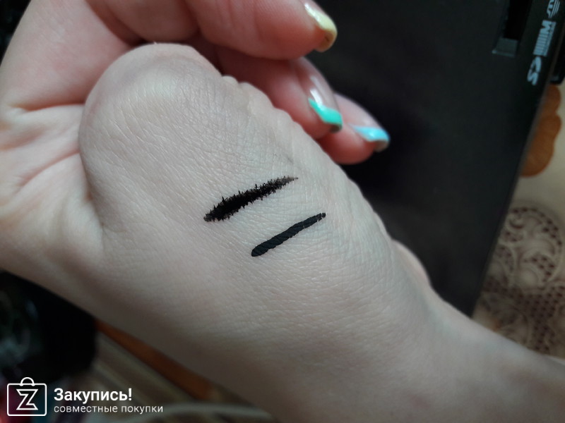 Заказывала Жидкую подводку MAC Liquidlast liner. Ужасная подводка, ощущение что ее разбавили водой, бледный цвет, растекается. Чтобы была черной, необходимо наносить несколько слоев. Никому не советую. На фото для сравнения данная подводка левее.