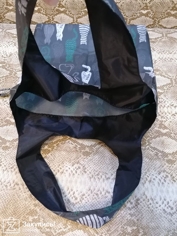 Сумка понравилась, тонкая, но достаточно прочная, размер тоже хороший, даже не ожидала, что такая будет большая, легко может заменить обычный пакет.