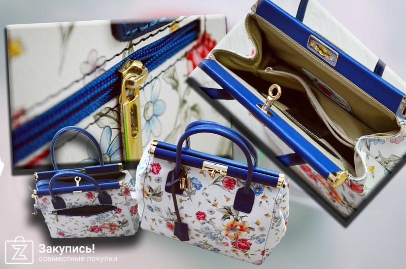 Sefaro exotic, Сумка женская из телячьей кожи, цветочный принт, Артикул: TB-012midi-03 Blu Bianco Fiori. Моя покупка очень понравилась моим родным, друзьям, коллегам и мне особенно, сумка выполнена аккуратно, очень милая, несмотря на небольшие габариты очень удобна и весьма вместительна. Имеет жесткое дно, и металлические кнопки-ножки, благодаря твердому низу и твердым верхним частям застежки прекрасно держит форму. Товар полностью соответствует описанию и представленным фото. Рекомендую!