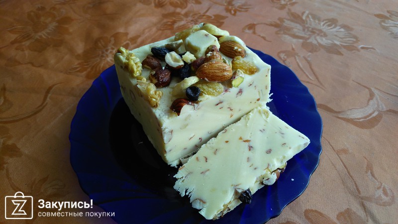Вставлю слово в защиту щербета. Да это не то что мы знаем в нашем привычном понимании про щербет. Зато этот из закупки просто мега полезная вещь и вкусная. Мне понравилось. Косточка попалась, ем аккуратнее. Есть такой \" продукт\" паста Аносова. Я сама делала , только стоить такой ручной труд за счет набора продуктов недешево. А здесь готовый продукт. Красотень. Орехи миндаль, фундук, грецкие все свежие , вкусные. Оргу спасибо за закупку:)