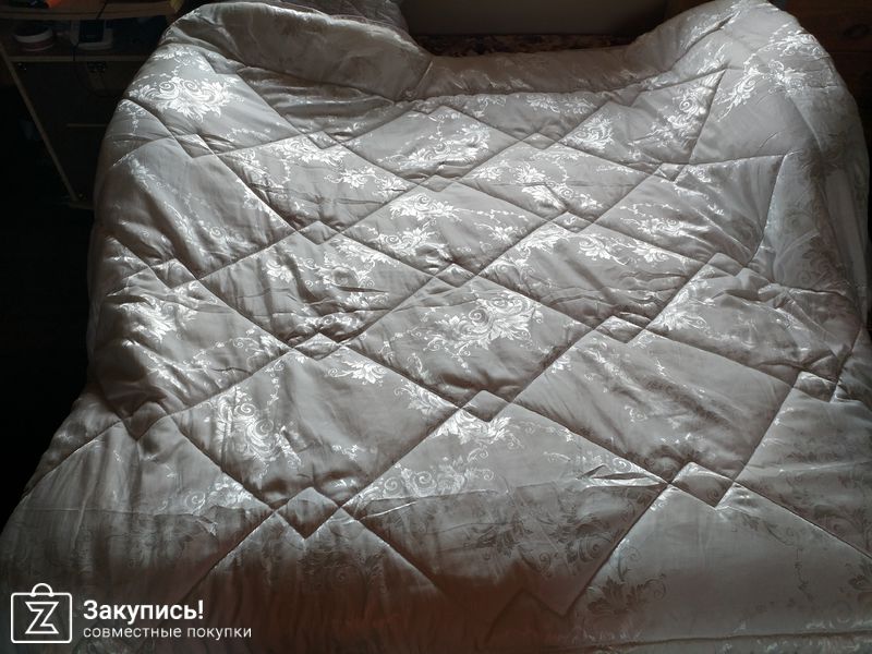Одеяло очень большое, лёгкое, теплое ( использовала всю зиму в частном доме, в комнате у нас 19-20 градусов), не шуршащее, очень качественное и красивое!