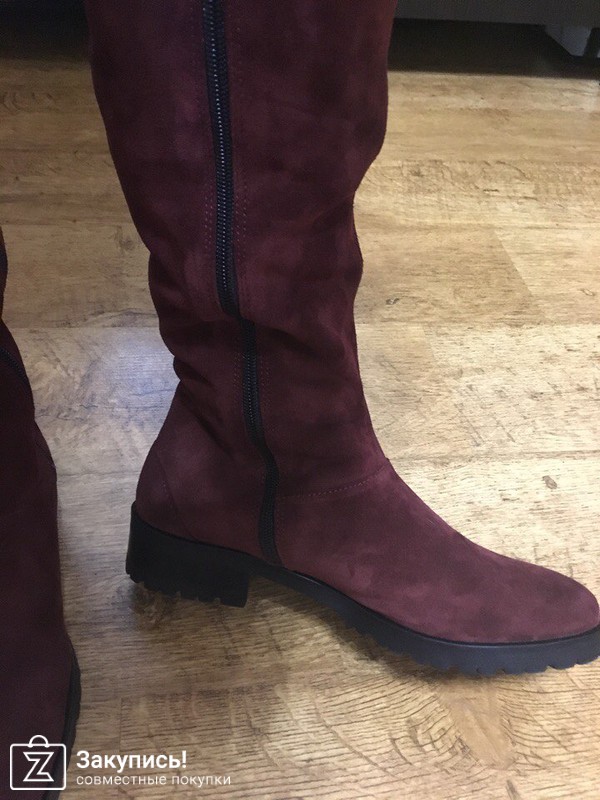 На самом деле когда заказывала думала, ну за 4 т будут сапожки на сезон, ...А в итоге, качество классное, замша мягкая, без посторонних запахов, мех заказывала не натуральный, но он прям такой приличный. На стопу 24.5 см заказала 38 чуть запасик есть для носочка, объем голени шили как на 37, так как нога у меня худющая)) Цвет более насыщенный, чем на фото. Вообщем я довольная как слон!!!! Наташа, лови воздушные поцелуйчики ****