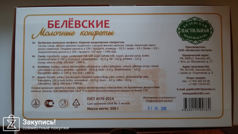 Наконец-то я попробовала Белевскую пастилу, в кусочке 30 гр примерно 35 ккал Для худеющих это просто находка, минимум калорий- максимум удовольствия. По вкусу похоже на кекс ( так муж охарактеризовал). Заказывать ещё однозначно буду, хотелось бы чтобы организатор более оперативно отвечал на вопросы и информировал о состоянии закупки