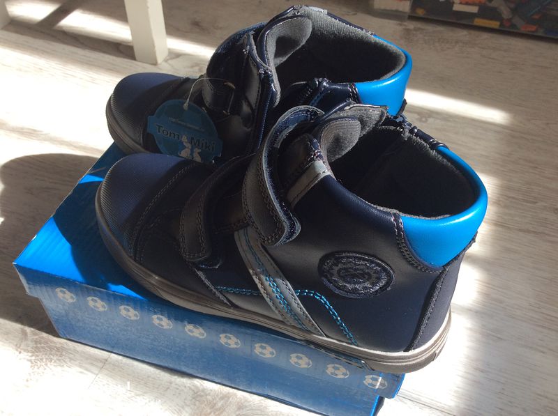 Хорошие ботиночки. Кожзам. Идут в размер.На 19,5 см взяла 32р-р. Внутри материал похожий на флис. Сейчас ребенок в них ходит,все нравится.