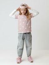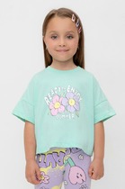 Футболка для девочки из эластичного трикотажа в рубчик. Изделие сохраняет цвет и форму после многократных стирок.— Описание у На сайте поставщика