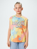 Футболка для девочки из высококачественного натурального хлопка с эффектом слаб. Короткие рукава. Спереди принт.