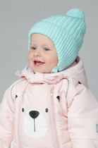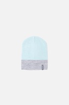 Однотонная светло-бирюзовая шапка из полушерсти. Украшена фирменной жаккардовой нашивкой.