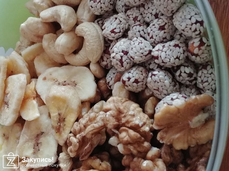 В целом мне закупка очень нравится. Быстрые выкупы, хорошие цены. Особенно нравится имбирь в сахаре - хватает надолго, и арахис в кунжуте - оочень вкусно. Изюм коричневый мелковат и с косточками, поэтому не очень рекомендую.