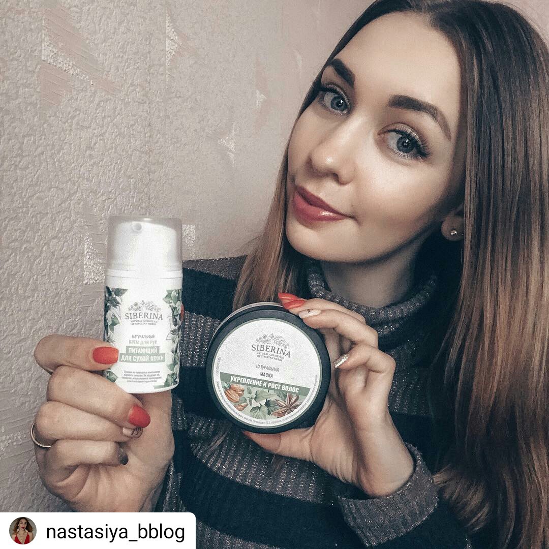 #Repost @nastasiya_bblog • • • • • Любите натуральную косметику? Вот я все больше и больше отдаю предпочтение именно натуральной косметике, особенно берет гордость за ту, что изготавливается в России ! Поэтому сегодня познакомлю вас с маркой - @siberina_cosmetics – это российская компания, которая создает уникальную и на 100% натуральную косметику на основе сибирских трав. А вот и два моих личных фаворита у марки: Натуральный питающий крем для сухой кожи рук. Полюбила его за результат ! Действительно справляется с моей сухой кожей рук на ура, увлажнение на 5+! А ещё у крема очень милый и удобный дизайн- крем с дозатором, такое встретишь нечасто. Натуральная маска для волос «Укрепление и рост волос». Ни для кого не секрет, что я активно ухаживаю и восстанавливаю волосы, поэтому к этой маске прониклась особенной любовью! Маска, как и вся продукция марки Siberina имеет натуральный состав. Используем ДО мытья головы.Наносим на 15-20 минут на волосы, после чего смываем. Затем моем голову обычным для вас способом шампунь+кондиционер и вуаля-наслаждаемся красивыми и ухоженными волосами!