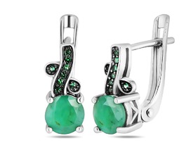 Серьги, арт.657869 Серебро Серебро 925, 1,64 гр., зеленый агат , изумруд берилл