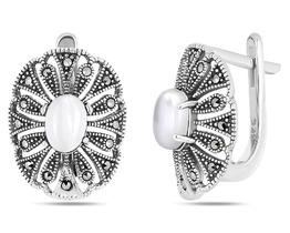 Серьги, арт.658261 Серебро Серебро 925, 5,3 гр., перламутр , марказит