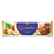 Гармоничный вкус сочетания нежнейшего молочного шоколада с тающей кремовой начинкой и кусочками обжаренного фундука.