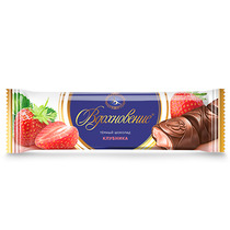 Великолепный темный шоколад в сочетании с нежной кремовой начинкой и кусочками спелых ягод клубники.