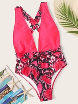 Неоновый розовый змеиной кожи спереди цельный купальник