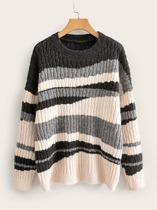 Двухцветное платье-свитер с рисунком "гусиные лапки"