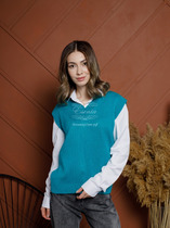 Жилет женскийРазмер: 42-46,48-52Состав: акрил 100%Артикул: w-550Страна производства: РоссияНа фото цвет: нежно-голубой