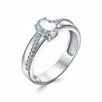 Кольцо с фианитом родированное серебро 925*