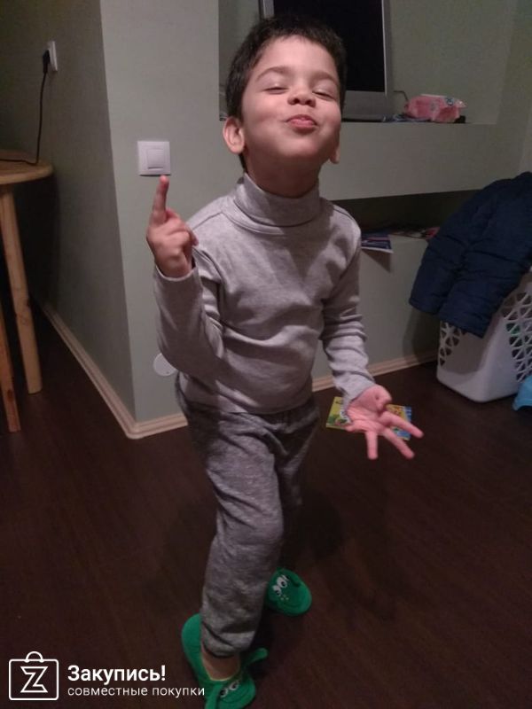 Довольный мой сын в водолазке Вертабаудет. На рост 105 и возраст 3 года 8 месяцев взяла размер 6 лет, ориентировалась на размерную сетку. Качество трикотажа и пошив отличные. Цена смешная с распродажи)
