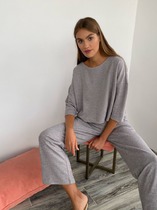 S2269 КОСТЮМ ИЗ МЯГКОГО ТРИКОТАЖА В КРАПИНКУ СЕРЫЙ
