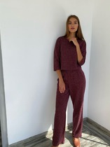 S2302 КОСТЮМ ИЗ МЯГКОГО ТРИКОТАЖА В КРАПИНКУ БОРДОВЫЙ