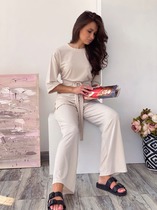 4152 КОСТЮМ ИЗ ХЛОПКА В ПИЖАМНОМ СТИЛЕ ПУДРОВЫЙ