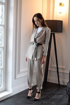 S1770 КОСТЮМ ИЗ ЛЬНА СЕРЫЙ В ПОЛОСКУ