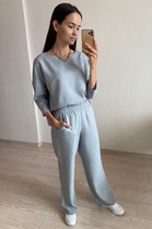 4152 КОСТЮМ ИЗ ХЛОПКА В ПИЖАМНОМ СТИЛЕ ПУДРОВЫЙ