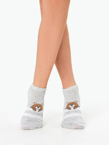 рис.2793 Гладкий детский носок с резинкой, средней высоты и объемным рисунком в виде медведя.— Описание у На сайте поставщика