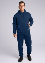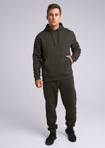 Брюки с отрезным поясом из кашкорсе, двумя карманами в боковых швах и одним накладным карманом сзади.