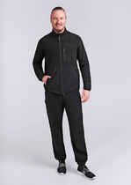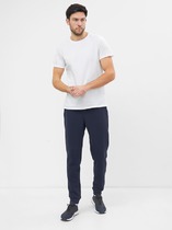 Брюки на манжетах с отрезным поясом из кашкорсе, двумя карманами в боковых швах.