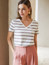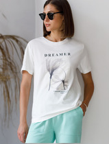 Джемпер умеренного объема из хлопкового трикотажного полотна. Втачной короткий рукав. Округлая горловина с окантовкой.— Описание у На сайте поставщика