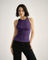 Майка из кашкорсе, облегающая с отстроченными рельефами. Горловина и проймы окантованы основной тканью
