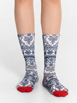 рис.2868 Женский носок с высоким плотным бортом, а также с рисунком в виде надписи и кота.— Описание у На сайте поставщика