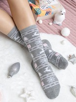 рис.1792 Женские махровые классические носки с рисунком в виде оленей, подарков и елочек.— Описание у На сайте поставщика