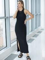 22.03 Vilatte Длинное прямое платье с разрезами из 100% хлопка D42.124 черный