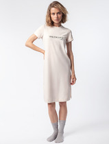 22.03 Vilatte Свободное платье-футболка с разрезами и принтом из 100% хлопка D4