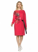 Платье прямого силуэта . Длина миди. Втачной рукав. В боковых швах разрезы. горловина окантована.— Описание у На сайте поставщика