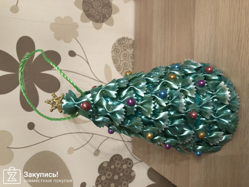 Очень хвалю акриловые краски: Классно с ними работать, сохнут моментально, если испачкались, сразу смыть водой, потом уже будет проблематично. Вот такую ёлку сделали на основе картона, клея-пистолета, макарошек, акриловых красок и бусин. Хотим теперь домой себе сделать золотую.
